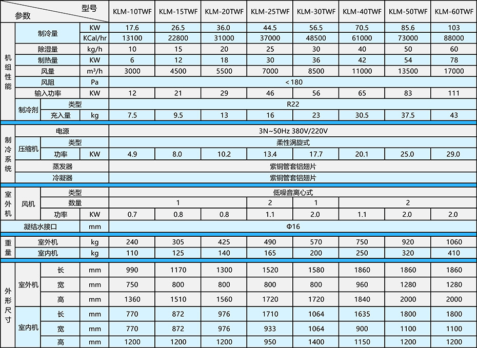 水冷機(jī)組參數(shù)表